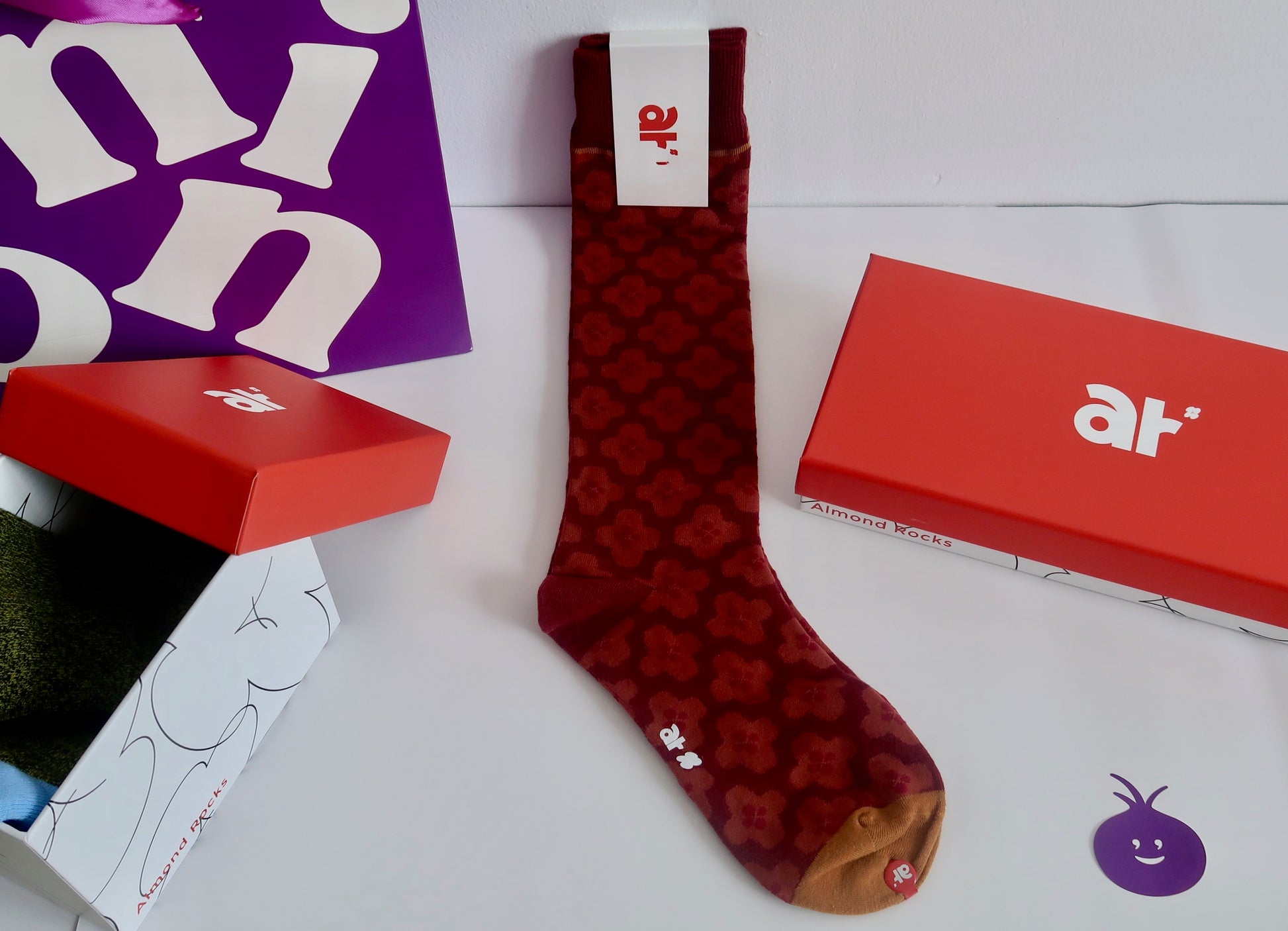 Almond Rocks Bold - Red Flower Long Socks
