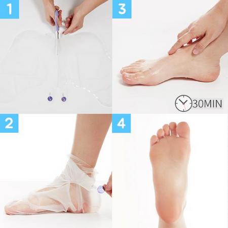 Wash the feet and closely follow the steps on the mask.