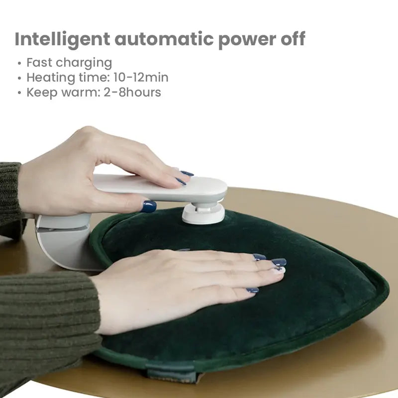 • Intelligent charger with safety function: the device only recharges the hot water bottle once it has cooled down to a safe temperature. This is not a fault, but a built-in safety feature to protect your hot water bottle. Just wait a few minutes for the bottle to cool down before recharging.