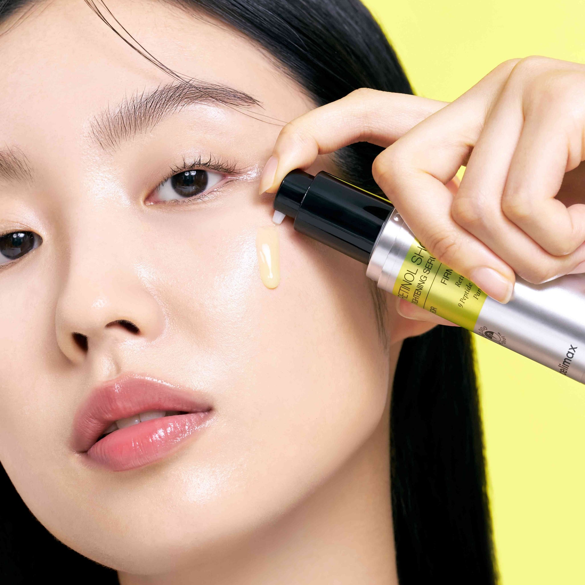 Celimax The Vita-A Retinol Shot Tightening Serum offers High-Performance care with 0.1% of pure retinol, not a retinol derivative. The A-Shot™ ingredient, a fine particle that can cause a tingling sensation, contains 162,000 particles that delicately stimulate dull skin, leading to fundamental skin changes and a differentiated tightening effect. This serum has a highly concentrated yellow-colored formulation that is full of moisture without stickiness, providing refreshing and subtle moisture and radiance.