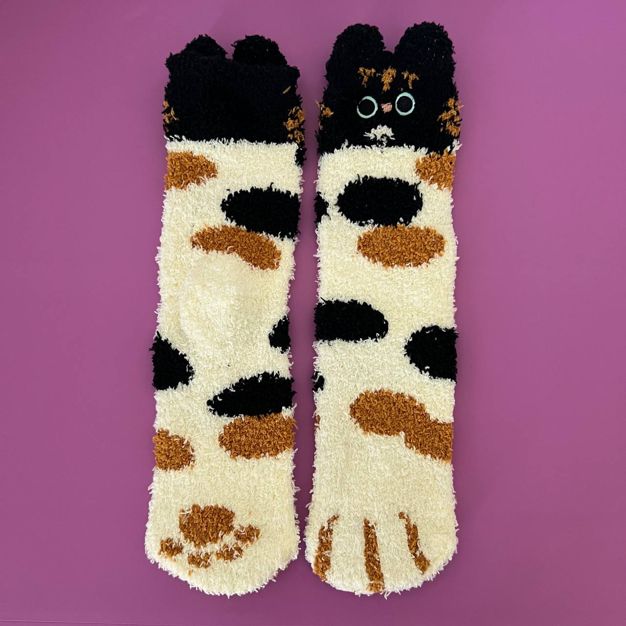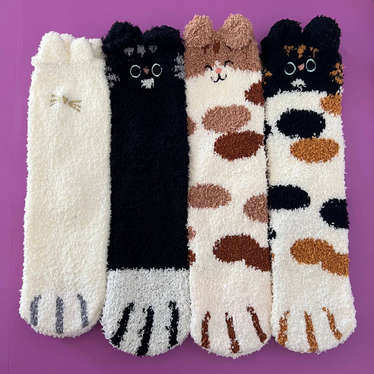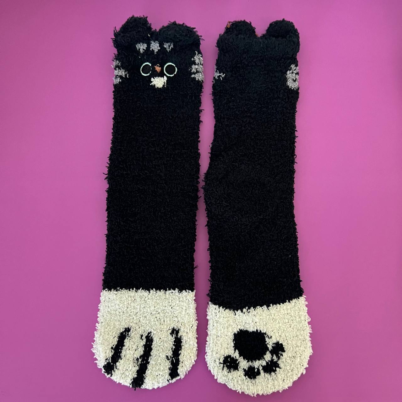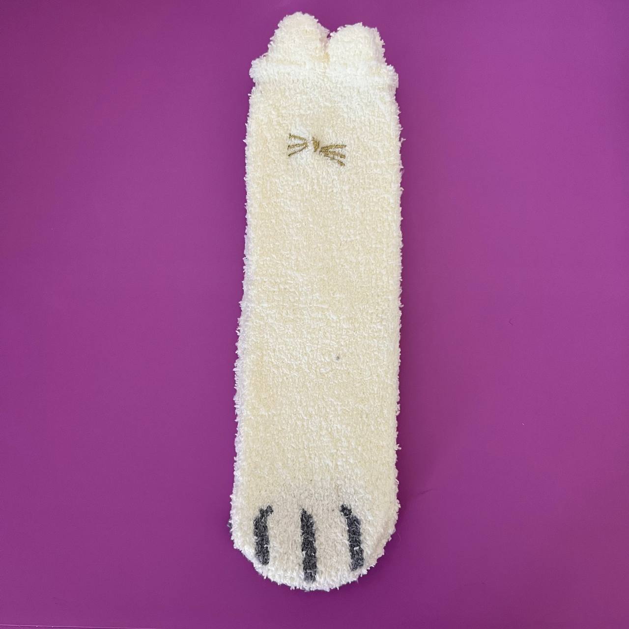 Ladies Fuzzy Cat Paw Crew Socks, Cute Kitty Fluffy Plush Winter Warm Soft Fleece Home Slipper Bed Socks