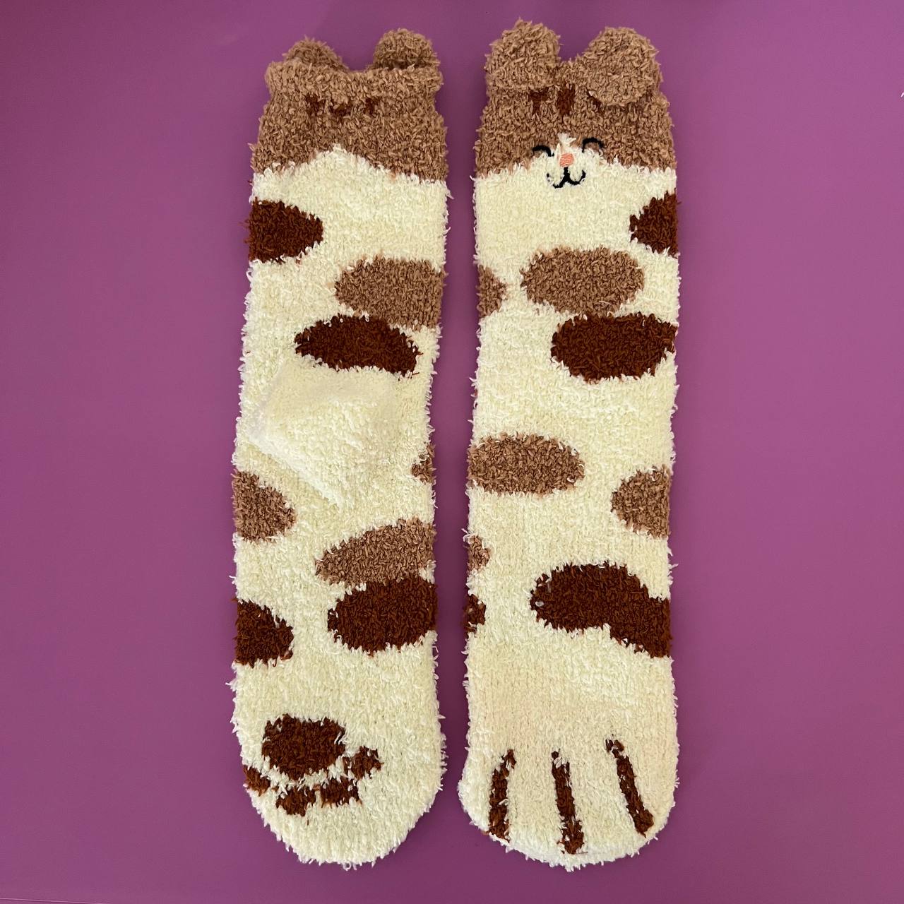 Fuzzy Cat Paw Fleece Socks with Ears