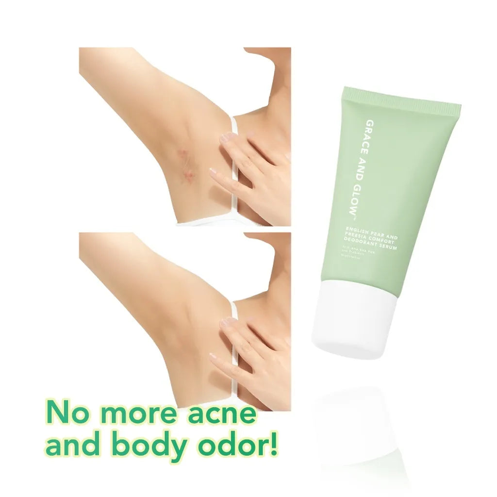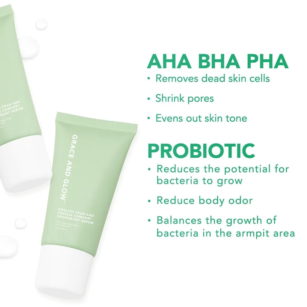 Grace and Glow English Pear and Freesia Comfort Deodorant Serum is the first deodorant brand that functions to stabilize bacteria in the skin. Has a perfume branded / high end. With the main ingredients, namely AHA BHA PHA to help remove dead skin cells, shrink pores, even out skin tone, and make your underarm environment less hospitable to growing bacteria. Probiotics Helps reduce body odor by encouraging good bacteria to grow and balances bacteria while creating a healthy microbiome on your skin. Equipped with Potassium Alum which can reduce sweat production and bad body odor without leaving stains on clothes.