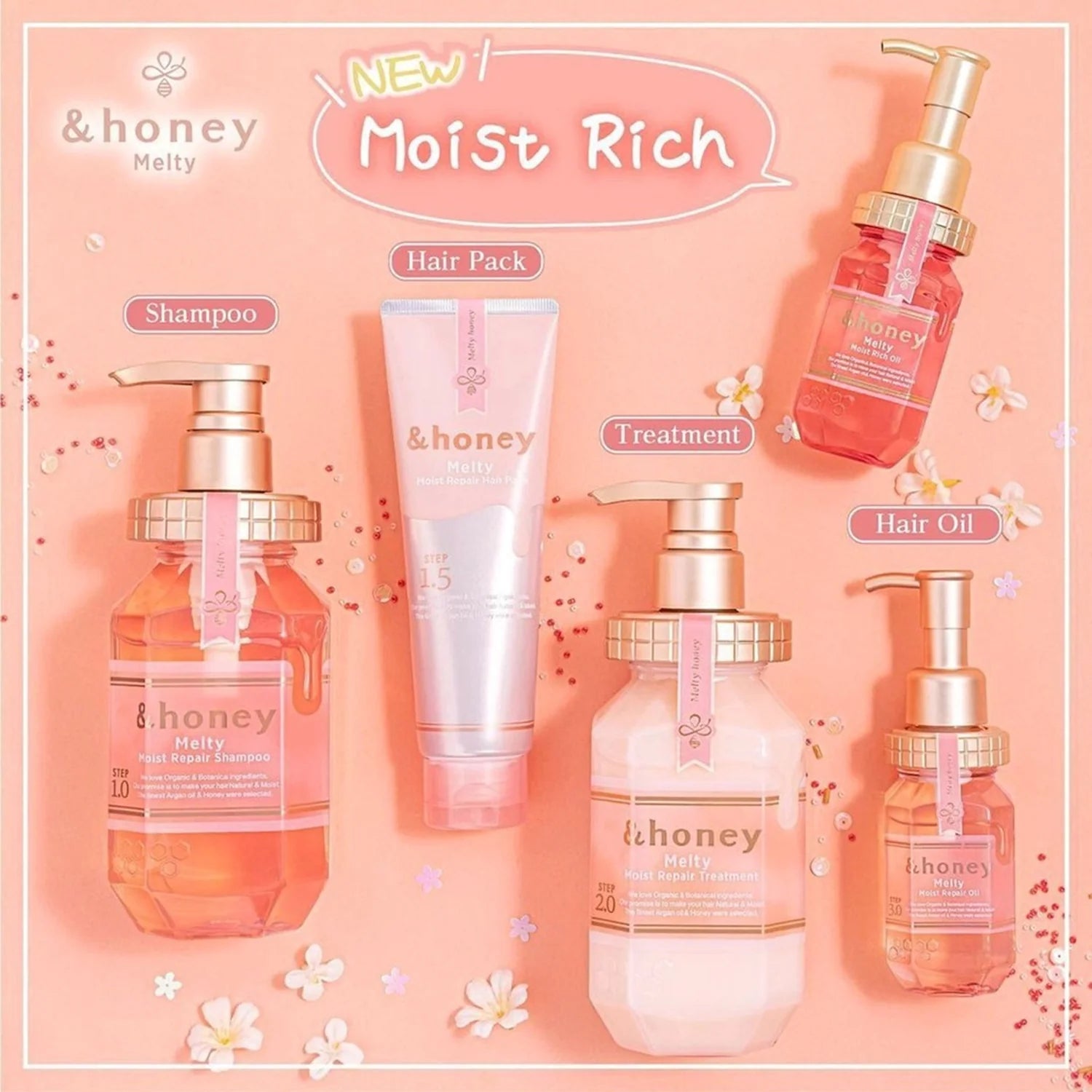 &honey Melty Moist Rich Hair Oil 3.0 Ultra Glossy Hair Treatment is a luxurious hair treatment designed to provide moist, sleek hair while effectively reducing frizz. Perfect for hair that is dry and lacks suppleness, this hair oil focuses on maintaining a moisture content of 14%, using its superior moisture-retaining power to eliminate wavy and frizzy hair. Enjoy hair that is not only manageable but also moist and shiny from roots to ends.