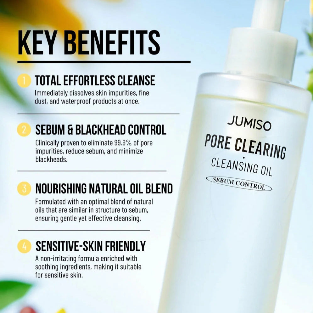 Jumiso Pore Clearing Cleansing Oil is formulated with natural oils like Jojoba and Sunflower Seed Oils to nourish the skin barrier and clear pores of impurities.