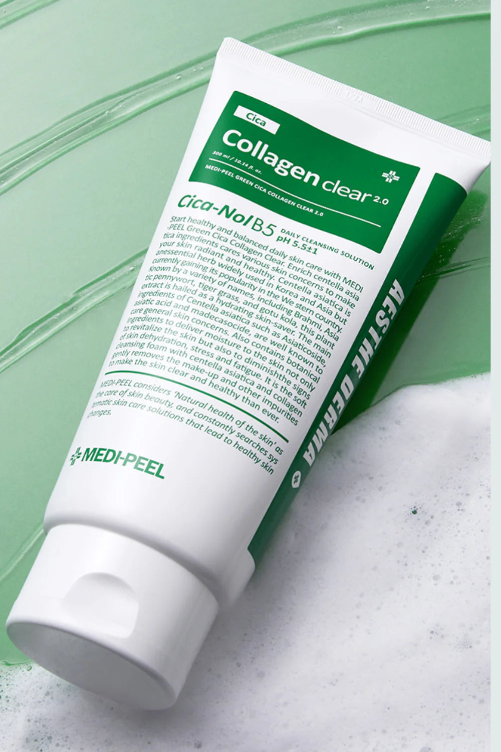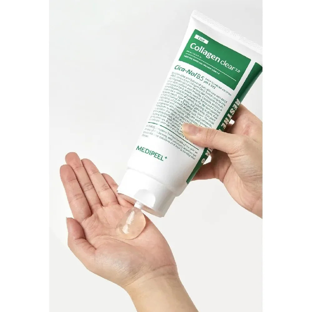 MEDI-PEEL Green Cica Collagen Clear 2.0 is an extended version designed for troubled skin and pore cleansing with collagen and Cica. Clinically proven for acne skin, it reduces sebum secretion by 31.70% and cleans ultrafine dust by 99.06%, eliminating the need for double cleansing.