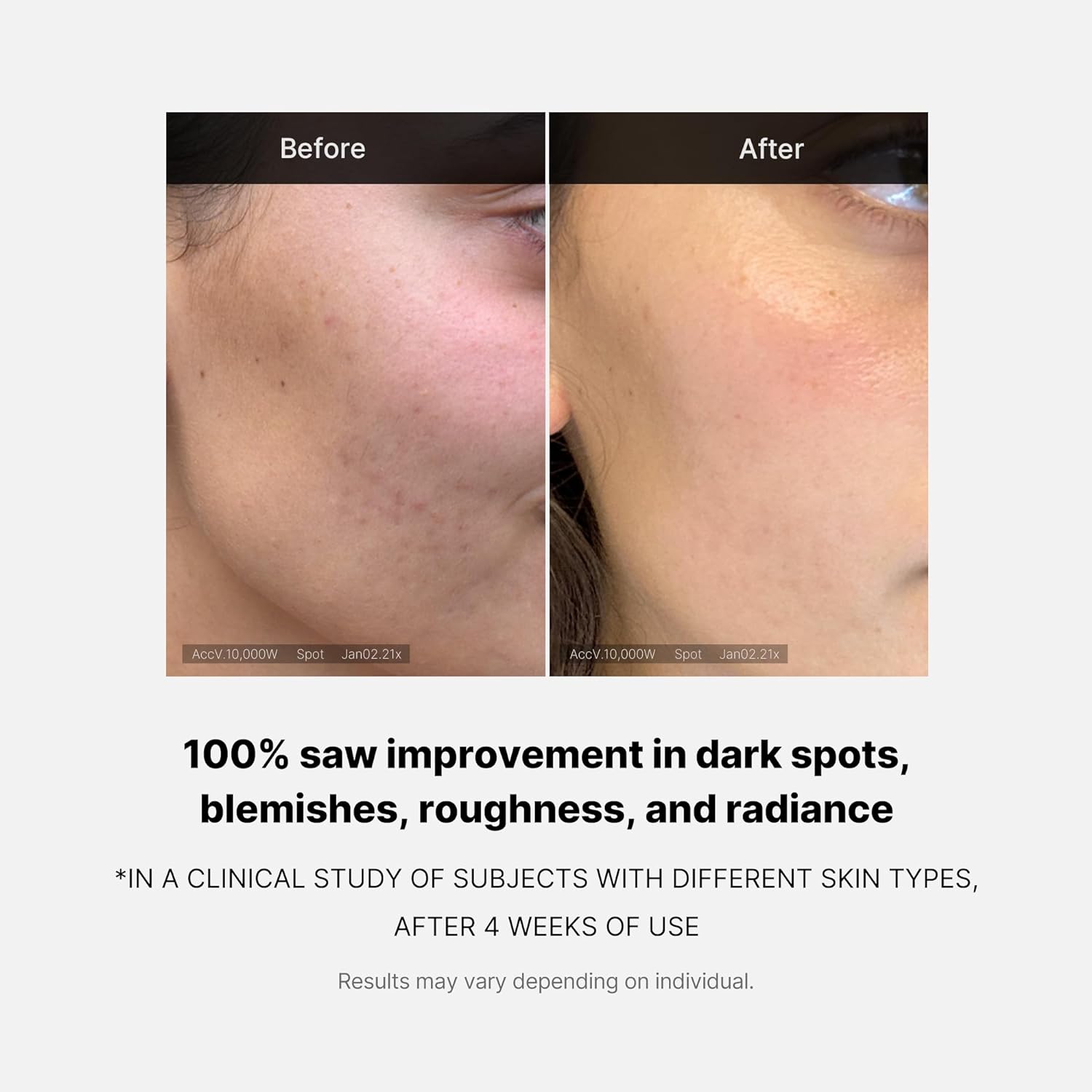 Over a 4-week period, a remarkable *100% of participants witnessed improvements in pigmentation, dark spots, exfoliation, hydration, and skin radiance.