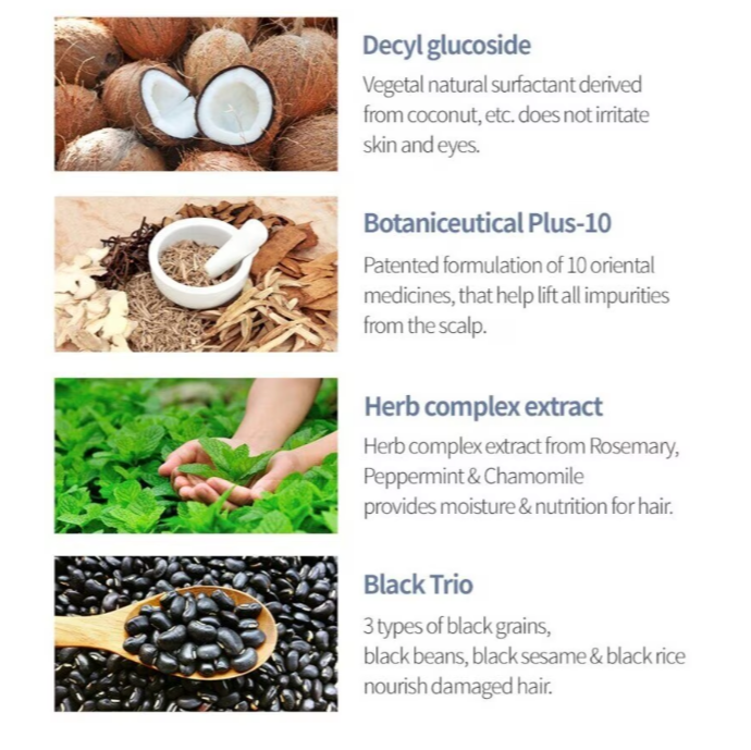 Water, Sodium Laureth Sulfate, Disodium Cocoamphodiacetate, Ammonium Lauryl Sulfate, Cocamide Methyl MEA, Fragrance, Glycol Distearate, Decyl Glucoside, Butylene Glycol, Oryza Sativa (Rice) Extract, Glycine Soja (Soybean) Seed Extract, Sesamum Indicum (Sesame) Seed Extract, Glycyrrhiza Glabra (Licorice) Root Extract, Sophora Angustifolia Root Extract, Angelica Gigas Root Extract, Morus Alba Bark Extract, Phellinus Linteus Extract, Cimicifuga Racemosa Root Extract, Paeonia Lactiflora Root Extract, Polygonum Multiflorum Root Extract, Scutellaria Baicalensis Root Extract, Hydrolyzed Keratin(2,000ppm), Milk Protein Extract(2,000ppm), Adansonia Digitata Seed Extract(2,000ppm), Dimethicone, Laureth-3, Laureth-23, Sodium Chloride, Polyquaternium-10, Glycerin, Glyceryl Linolenate, Glyceryl Linoleate, Glyceryl Arachidonate, Niacinamide, Limnanthes Alba (Meadowfoam) Seed Oil, Beta-Sitosterol, Ceteth-24, Ascorbyl Tetraisopalmitate, Choleth-24, Cholesterol, Panthenol, Potassium Cetyl Phosphate, Biotin, BHT, Ubiquinone, Sodium Benzoate, Tocopheryl Acetate, Citric Acid, Sodium Citrate, Disodium EDTA, Alpha-Isomethyl Ionone, Benzyl Benzoate, Benzyl Salicylate, Coumarin, Geraniol, Linalool, Butylphenyl Methylpropional
