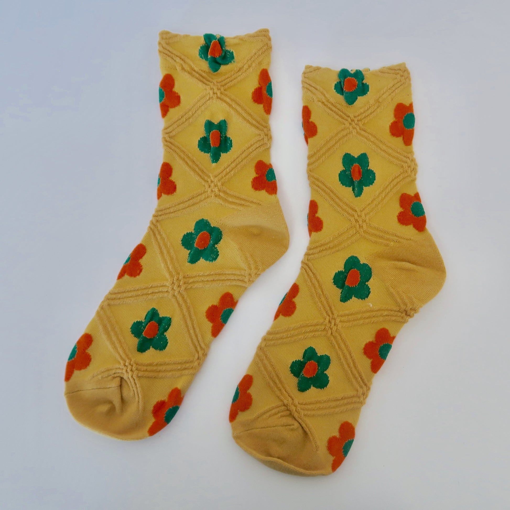 Mustard Yellow Floral Adult Socks