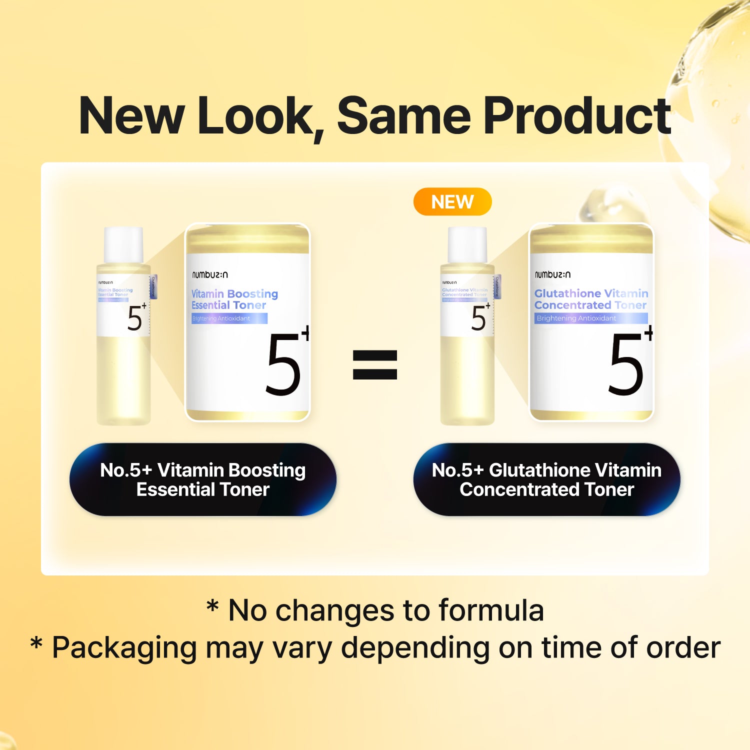 Packaging & Name change from Numbuzin No.5 Vitamin Boosting Essential Toner To Numbuzin No.5 Glutathione Vitamin Toner