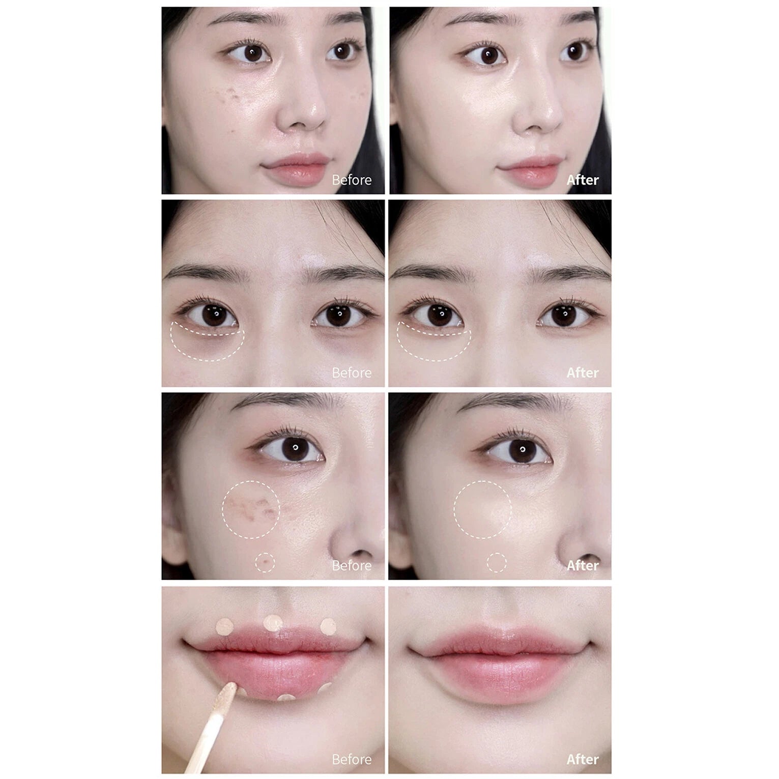 Use the applicator dot an appropriate amount on imperfections like blemishes, dark circles, or hyperpigmentation. Blend with a concealer brush or makeup sponge.