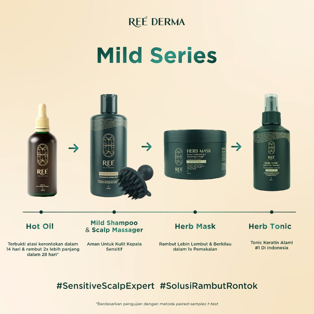 Lengkapi perawatan rambut kamu dengan Ree Derma Mild Shampoo, kandungan Amino Acid serta Real Natural Ingredients yang terdiri dari Cinnamon, Star Anise, Anise Seed, Clove Bud dan Rosemary, yang mampu membersihkan kulit kepala & rambut, mencegah terjadinya lepek dan mengurangi kerontokan.