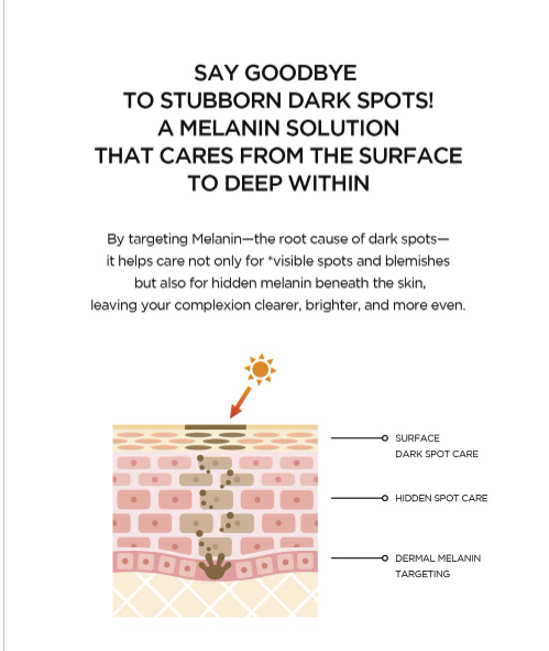 • A powerful Melanin solution that helps care from the surface to the hidden melanin under the skin.