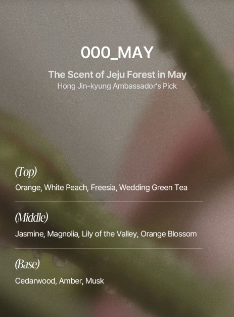 #May - It begins with the sweet notes of orange and white peach, accompanied by fresh freesia. As the fragrance develops, jasmine and magnolia blend with the subtle scent of lily of the valley and orange blossom. The warm finish unfolds with soft hints of cedarwood, amber, and musk.