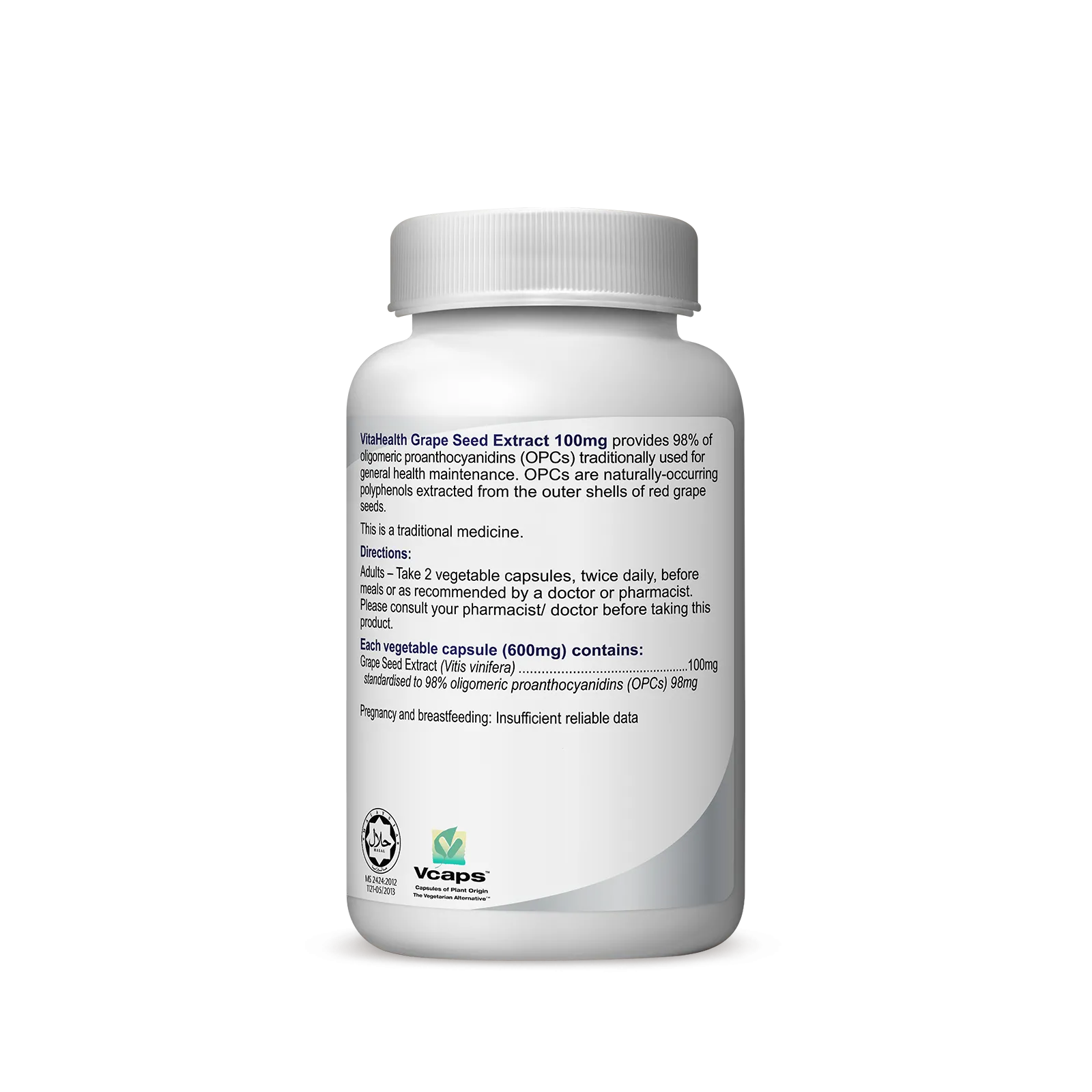 VitaHealth Grape Seed Extract 100mg is a formula which provides 98mg oligomeric proanthocyanidins (OPCs).