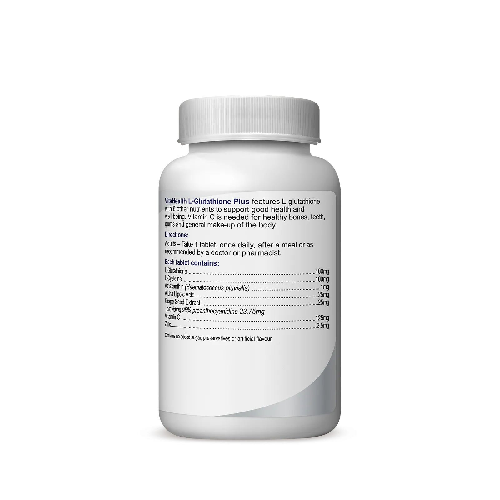 VitaHealth L-Glutathione Plus  combines the goodness of L-glutathione with 6 other well-known nutrients – astaxanthin, alpha lipoic acid, grape seed extract, l-cysteine, vitamin C and zinc.