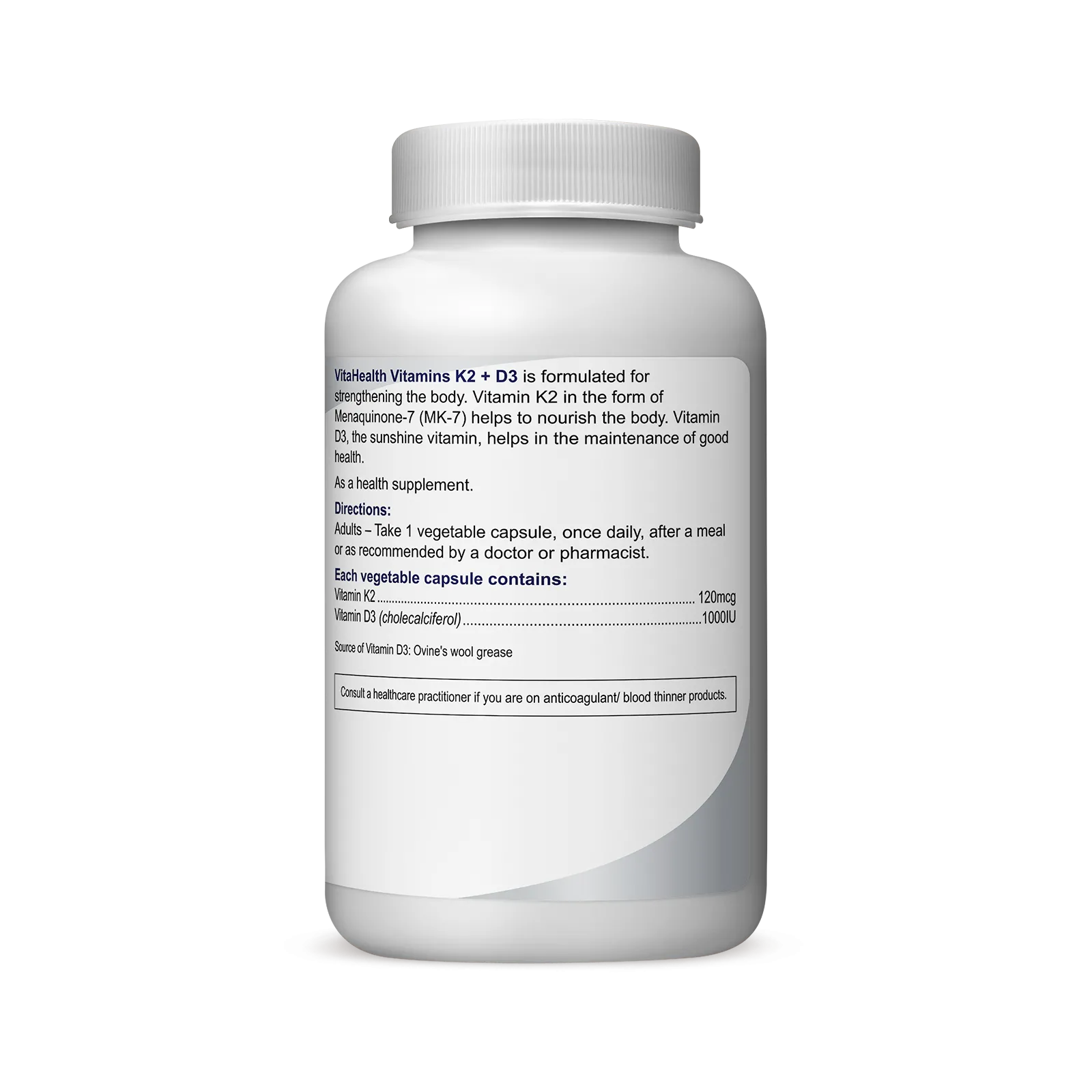 VitaHealth Vitamins K2 + D3 combines two important fat-soluble vitamins to maintain health.